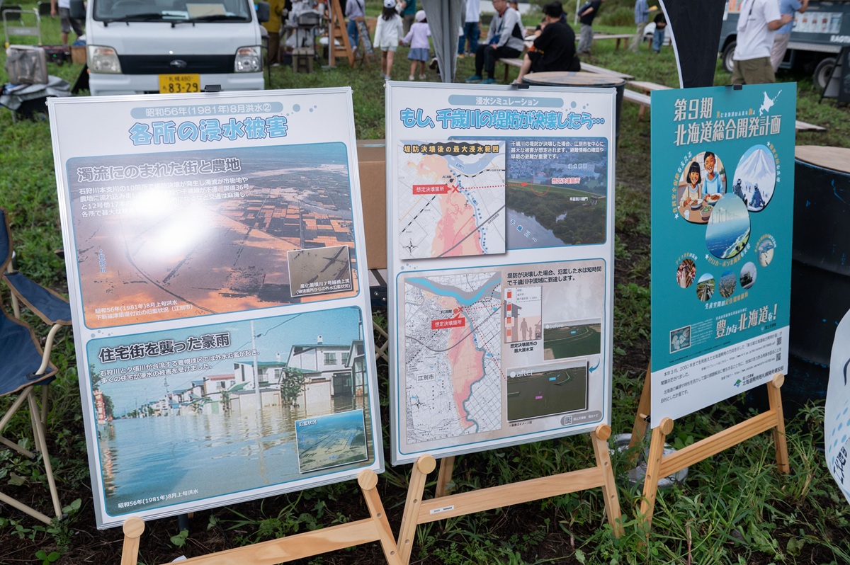かわまちづくりでは欠かせない、過去の水害、浸水シミュレーション、第9期北海道総合開発計画のパネルも展示されました