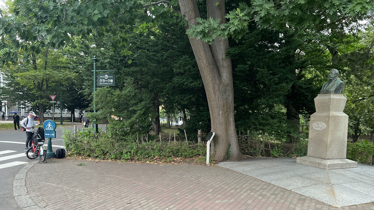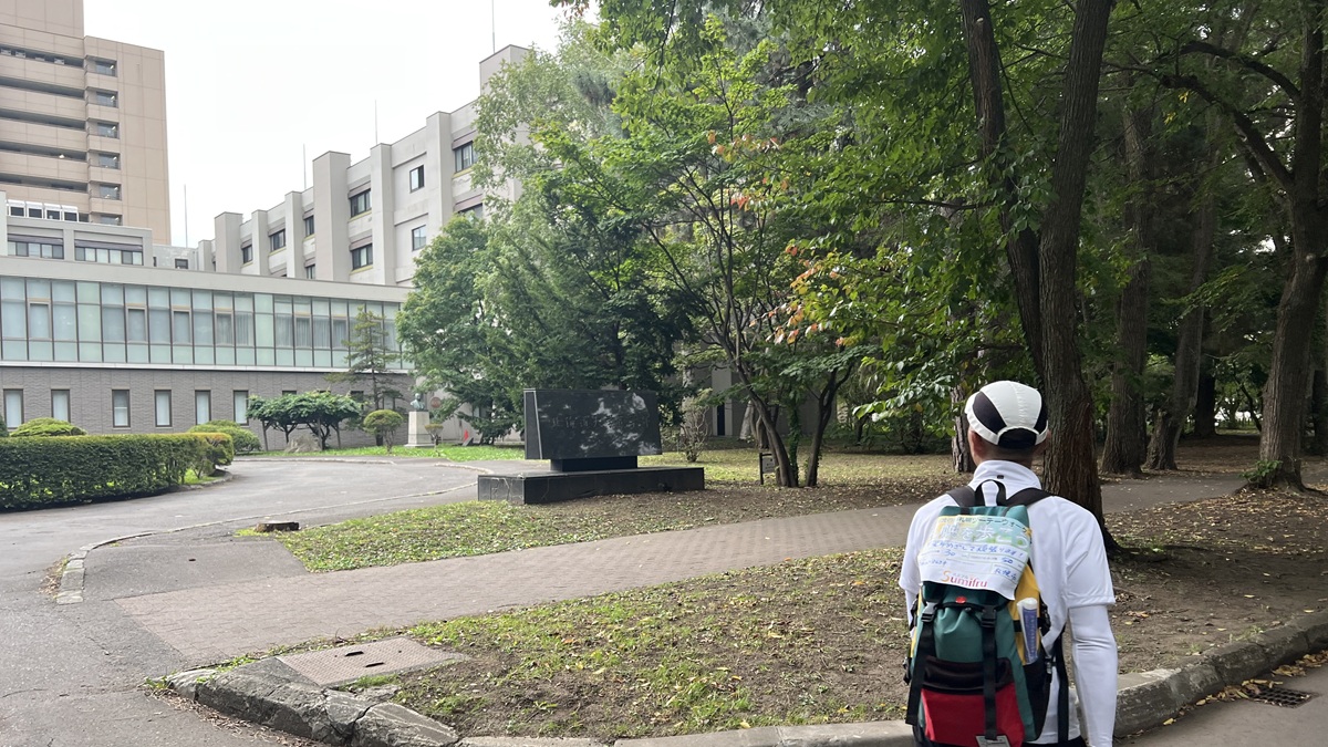丘珠空港を通過し、北区に入り大学村の森や美香保公園を通過すると、北海道大学構内に入ります。北大では北側の重厚な校舎群から始まり、各学部の特色ある建物を巡りながら進みます。道中にはポプラ並木やクラーク博士像もあり、さらに緑豊かなキャンパスを歩き抜け、南側へ向かうと市街地へと開かれた門に至ります。