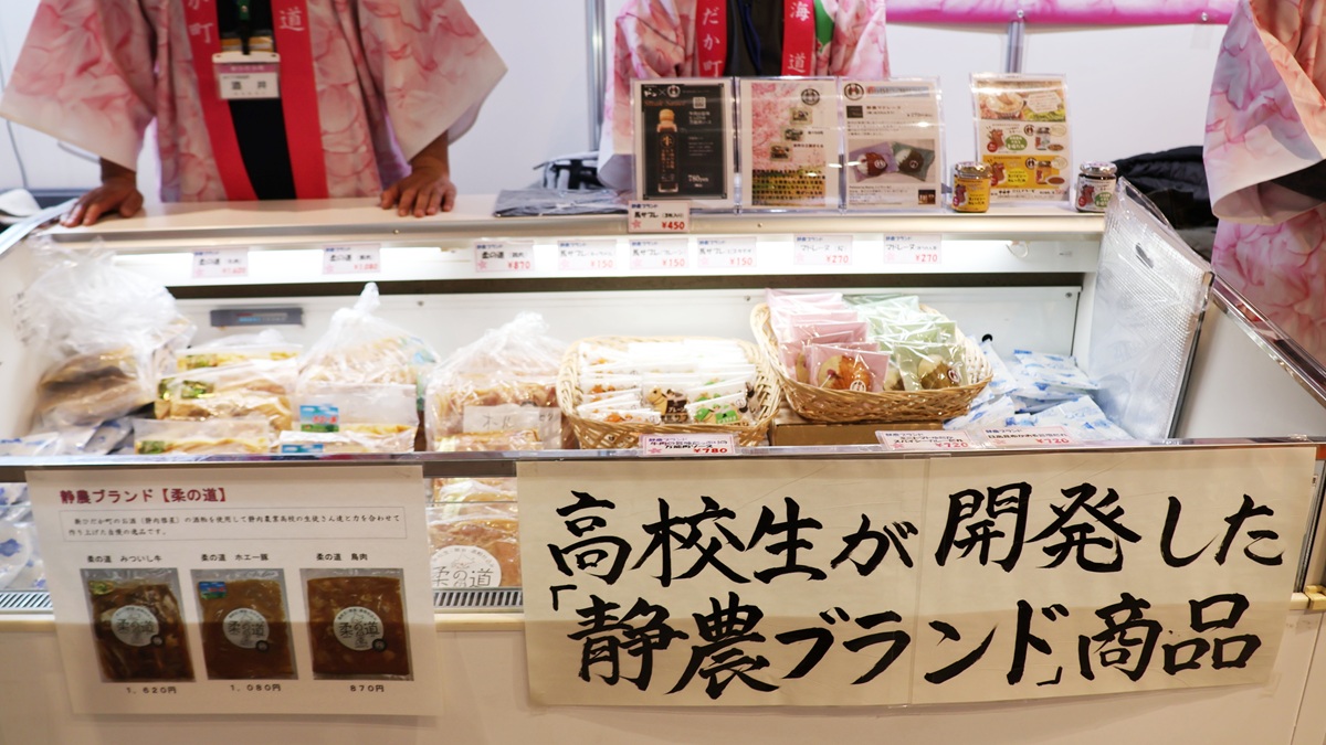 新ひだか町からは、静農ブランド【柔の道】のお肉(みついし牛、ホエー豚、鶏肉)が販売されていました。新ひだか町のお酒(静内彗青)の酒粕を使用して、静内農業高校の生徒さんと力を合わせて作り上げた自慢の一品のようです。