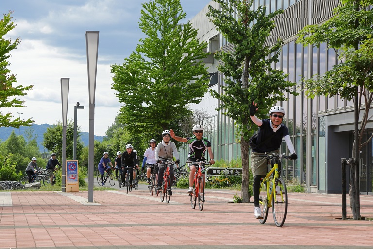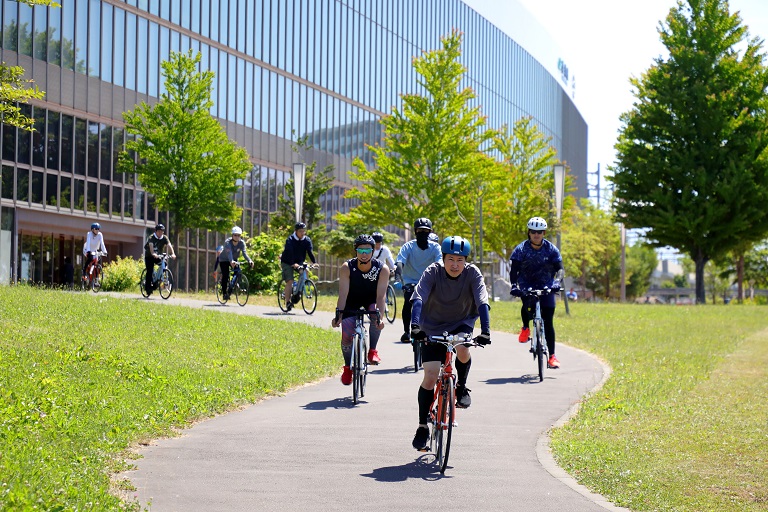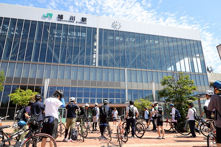 本走行会は石狩川流域圏ルートの検証、PR、モニタリングを主眼として例年開催され、今回はJR旭川駅から旭山動物公園、道の駅ひがしかわ「道草館」を経由してJR旭川駅へ戻る走行距離約50㎞のサイクリングとなりました。
