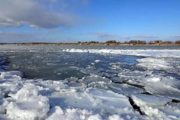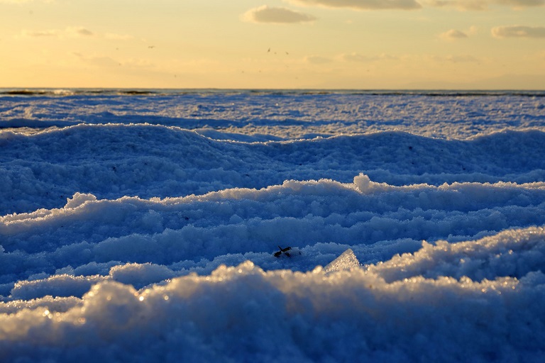 むかわ町で太平洋に流れる鵡川は砕氷が上流から次々と流れ着き、結氷が始まりつつあります。