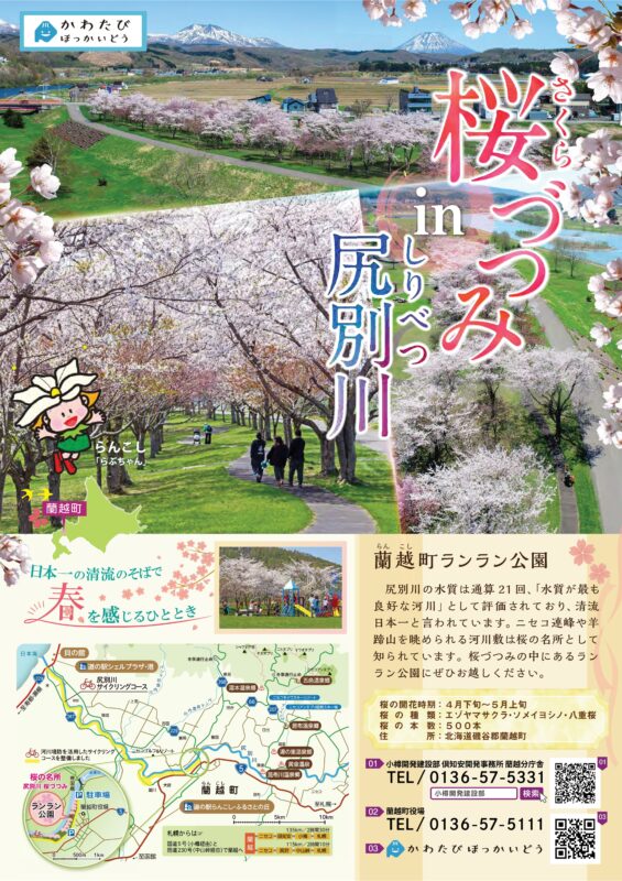 今年も尻別川桜づつみをPRするチラシ2026[日本語版・英語版]を作成しました。ダウンロードできますので、それを持って是非蘭越町にお越しください!