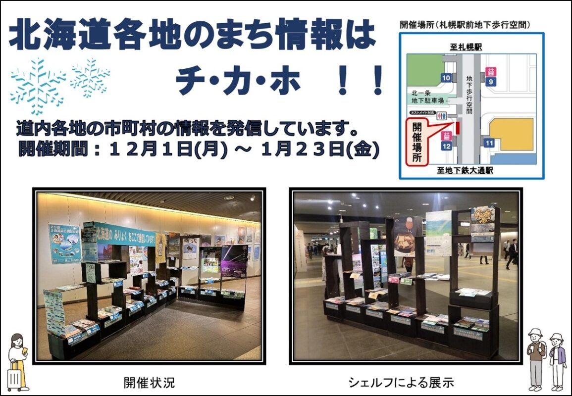 札幌開発建設部では、北海道の魅力ある地域の情報を発信するため、札幌駅前通まちづくり株式会社と協働で、チ・カ・ホ(札幌駅前通地下歩行空間)において、道内各地で行われている取組を紹介する「北海道“みりょく”発信プロジェクト」を実施しています。