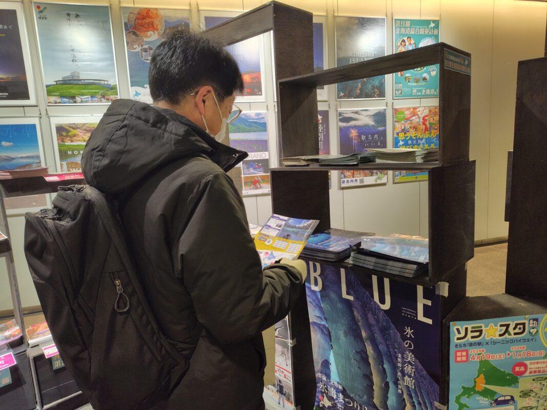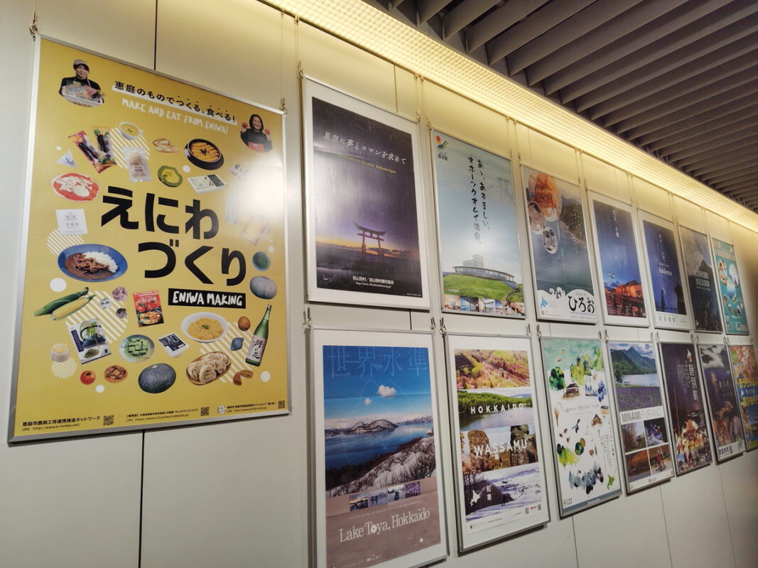 気軽に立ち寄れるシェルフバイウェイ(寄り道棚)に、道内各地の「観光(イベント)」、「食」に関するポスターやパンフレットなどを展示しています。