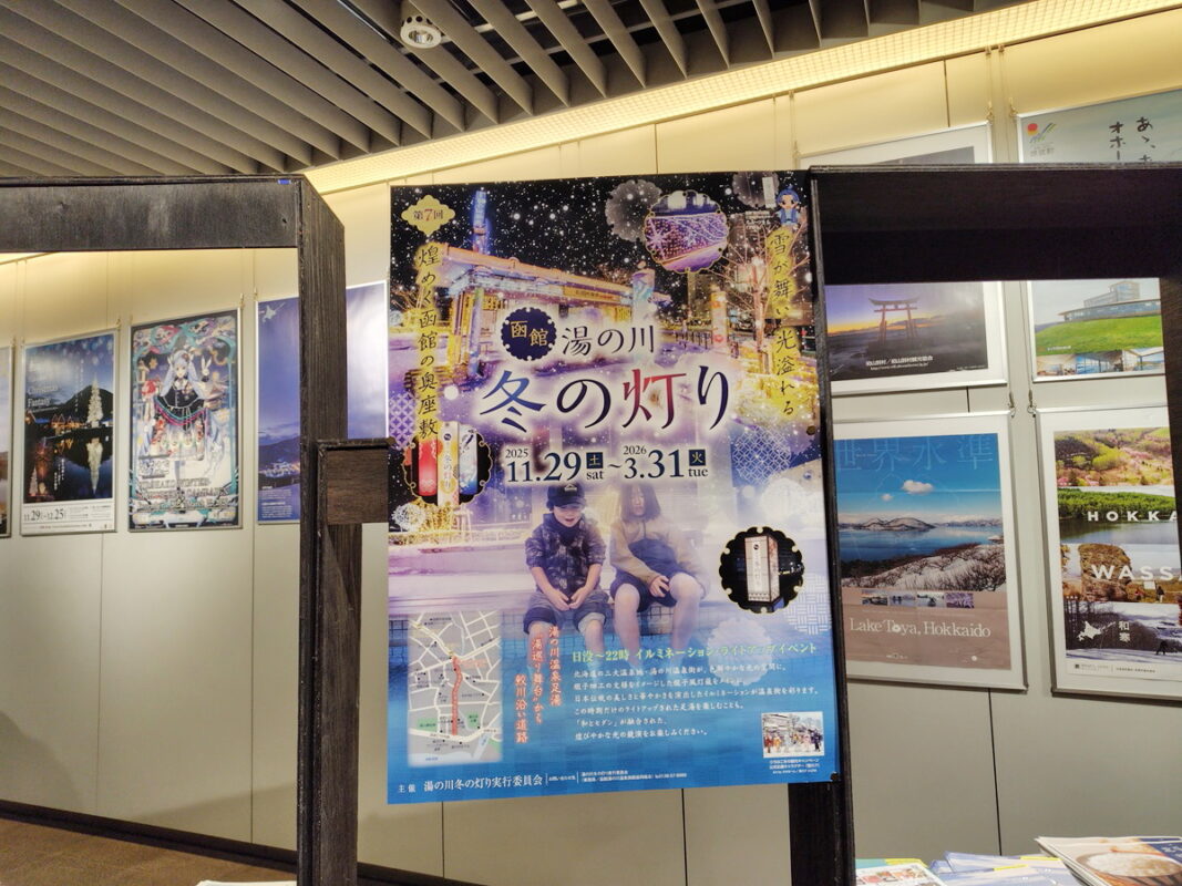 「函館湯の川 冬の灯り」のポスター。イベント期間(11.29~3.31)の時期だけ、ライトアップされた足湯を楽しむことができます。