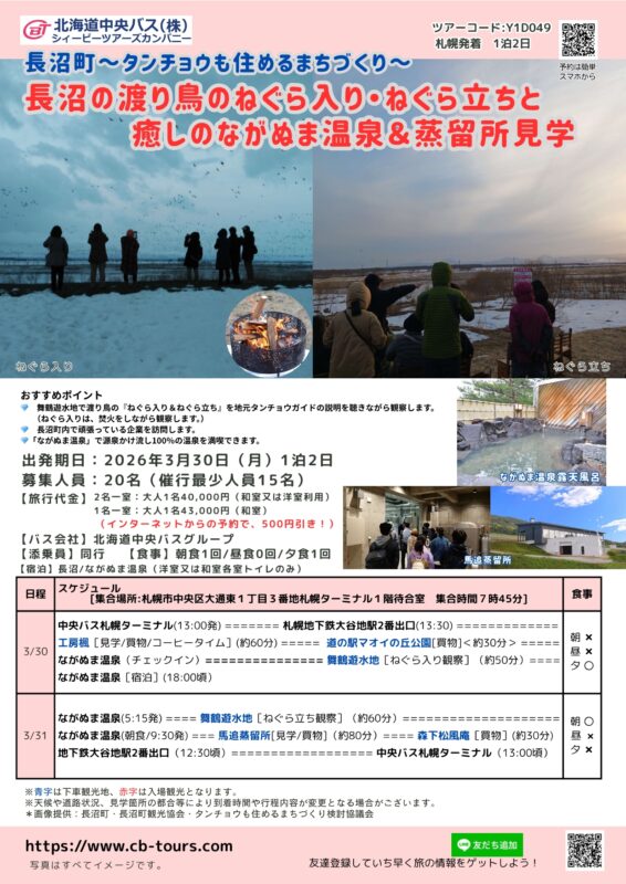 1泊2日でながぬま温泉に宿泊して、舞鶴遊水地・長沼町内各地を見学するツアーです!