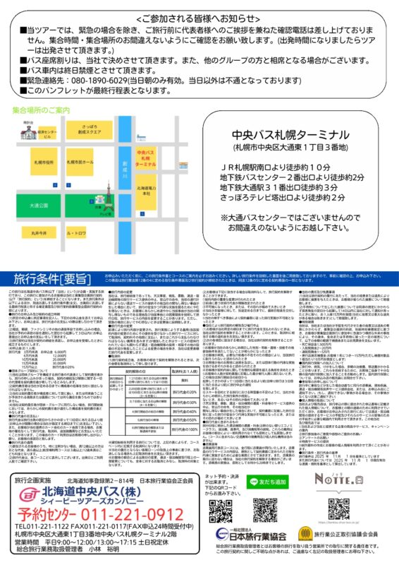 ◎集合場所:中央バス札幌ターミナル1階待合室(札幌市中央区大通東1丁目)