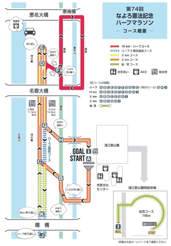 ◎スタート時間:ハーフ 10:00、10km 10:20、5km 10:30、2km 10:10