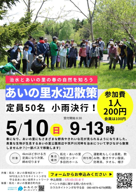 貴重な生き物が生息する、あいの里公園周辺や茨戸川河畔を治水について学びながら散策しませんか?(一部バスで移動します)