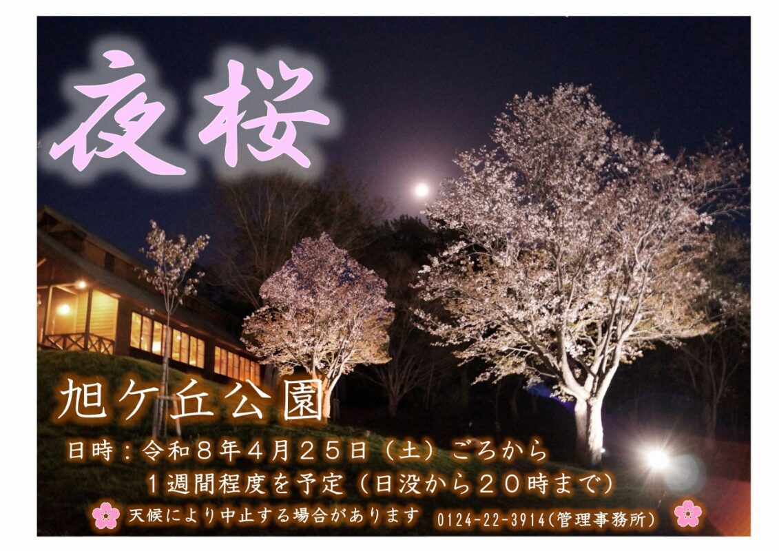 桜の見ごろに合わせて、夜桜のライトアップを実施します。「夜空に映える桜」をご家族やご友人と一緒にご観覧ください。